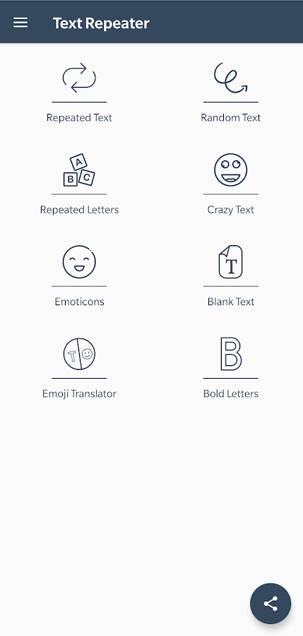 С помощью этого приложения вы можете отправить одно и то же сообщение несколько раз. Это приложение представляет собой комбинированный пакет для приложения для всех повторений с небольшим размером APK. Это один из видов повторителя сообщений для повторной отправки сообщения, а также вы можете установить предел повторения с повторением текста новой строки. С помощью этого приложения вы также можете создавать повторяющиеся буквы, используя символы алфавита и эмодзи. Кроме того, предоставьте случайные символы смайликов. Очень прост в использовании и требует нескольких кликов для повторения вашего сообщения. Процесс повторения работает асинхронно для более длинных пределов повторения.