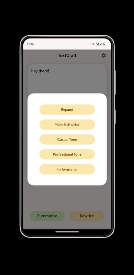 TextCraft упрощает чтение и письмо, используя технологию Al. В настоящее время приложение предлагает две основные функции — Суммировать и Переписать.