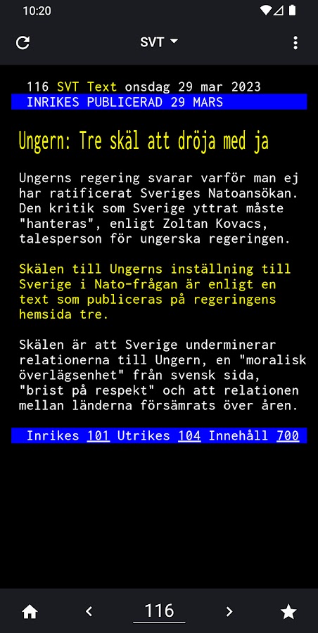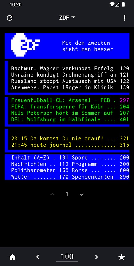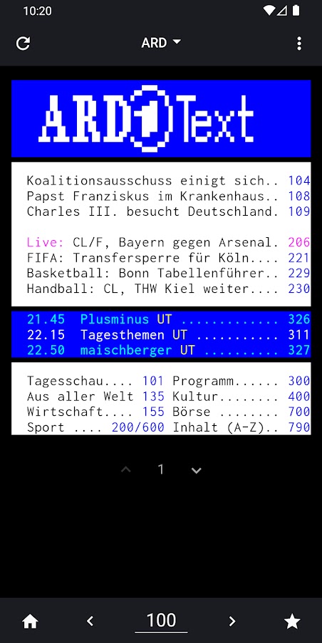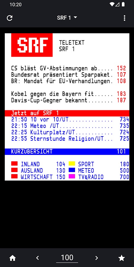 Содержимое извлекается непосредственно из официальных веб-версий телетекста. Текст может отображаться настоящим компьютерным шрифтом для лучшей читаемости.