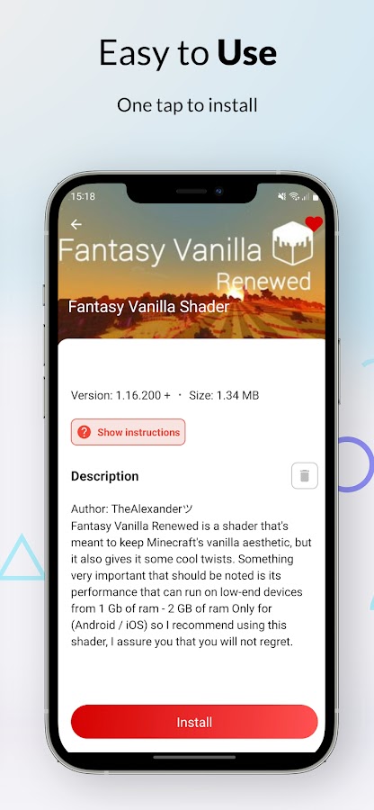 Пакет ресурсов для MCPE — это набор инструментов, который помогает вам легко и автоматически устанавливать пакеты ресурсов Minecraft, без таких трудных задач, как поиск в Интернете, сохранение файлов ресурсов и передача файлов вручную. Просто просмотрите, какой пакет ресурсов вам нравится, затем нажмите «Установить», и все готово. Принесите больше чудесного и восхитительного в свой опыт! Совершенно новый уровень с реалистичными пакетами текстур для Minecraft PE, скрытыми облаками, солнцем и луной, густыми листьями ксали, звездами, водой и деревом в зависимости от выбранных вами шейдеров.