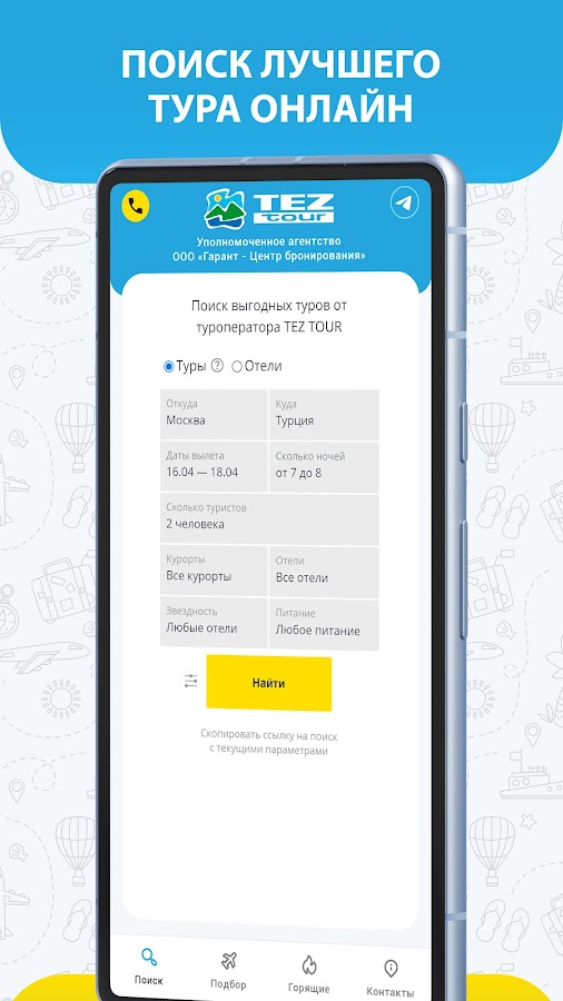 Поиск туров оот уполномоченного туристического агентства Тез Тур позволит вам:
