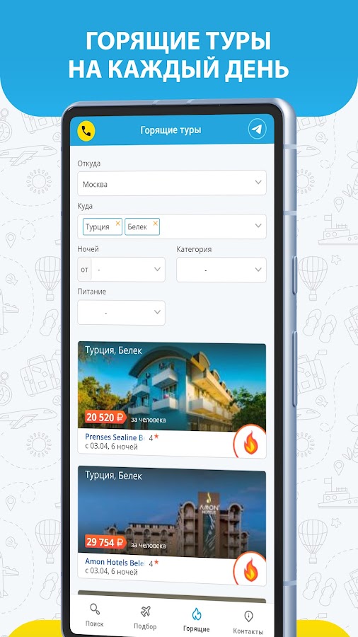 — за пару минут узнать об актуальных предложениях и горящих турах.