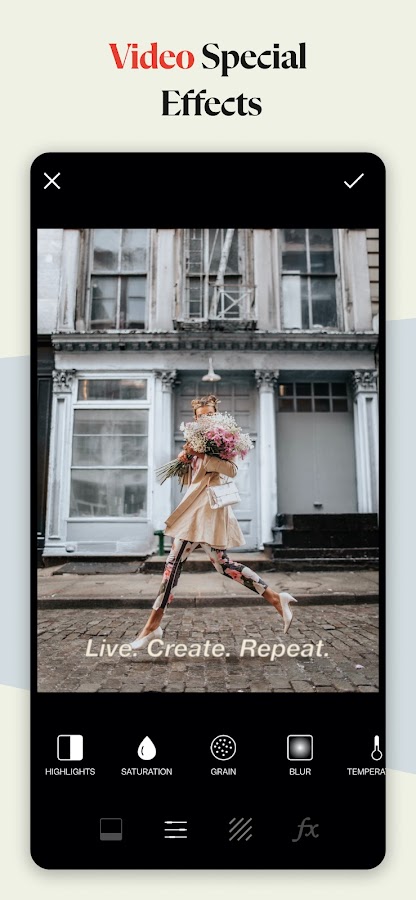 Легко добавьте идеальный фильтр из более чем 40 пресетов, созданных с любовью нашим основателем. Стиль варьируется от винтажного до темного и угрюмого, от минимального редактирования до яркого и красочного.