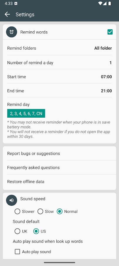♦ Функция ежедневного напоминания словарного запаса поможет вам легче учить лексику.