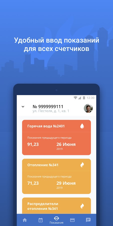 Получайте push-уведомления о выставленных счетах и сроках передачи показаний счетчиков тепловой энергии,