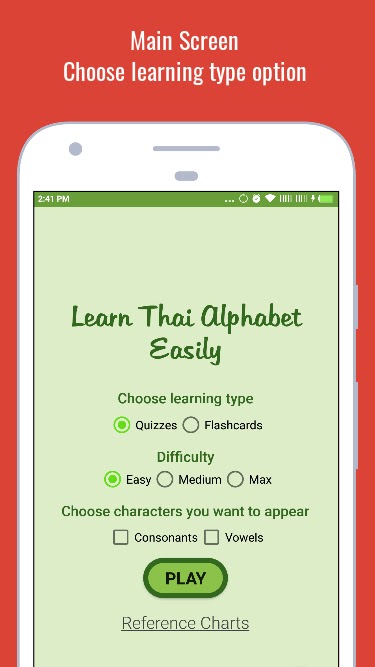 Это приложение облегчает новичку запоминание тайского алфавита (запоминание тайского письма).