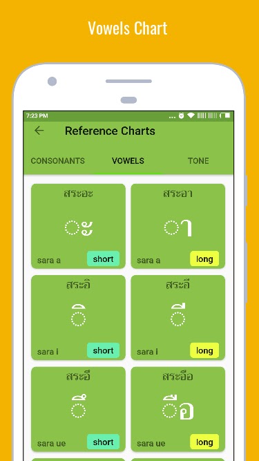 Приложение научит вас читать и писать тайский алфавит (тайский алфавит, тайский слог, тайские символы, тайские буквы, тайские символы). Если вы хотите выучить тайский язык, первое, что вам необходимо — это бегло знать алфавит (слог, слог, символы, буквы, знаки).