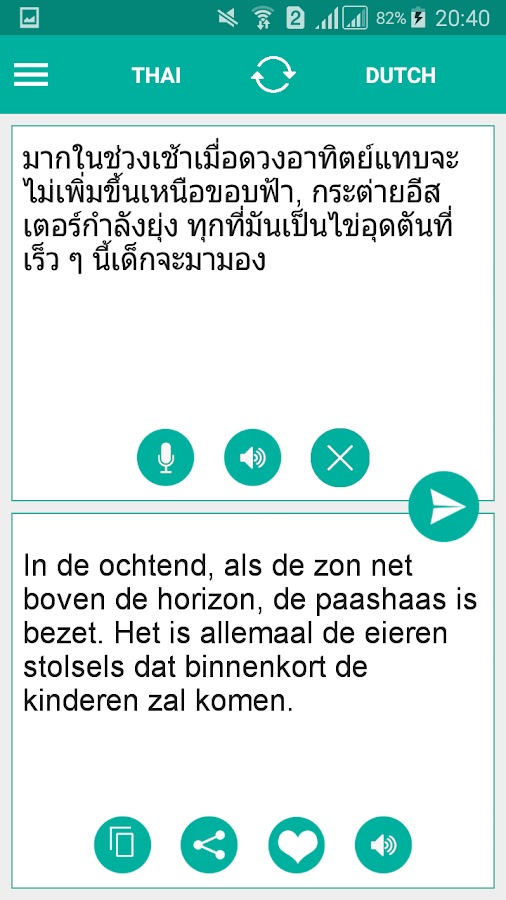 Бонусная функция — Изучите и освойте произношение, поскольку тайско-голландский переводчик имеет встроенную аудиофункцию. Слушайте переведенный текст и удобно общайтесь с друзьями, подругами, парнями, членами семьи или туристами.