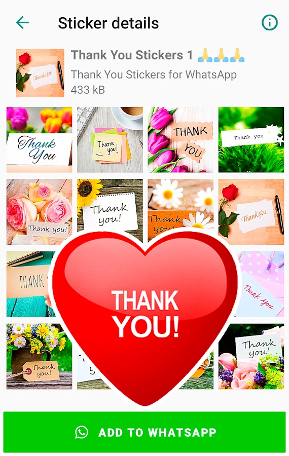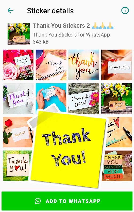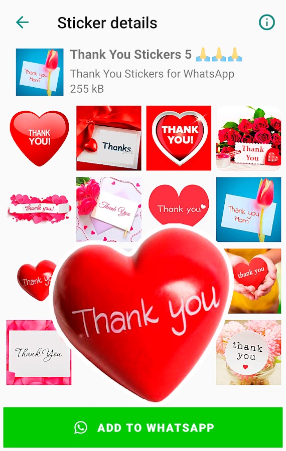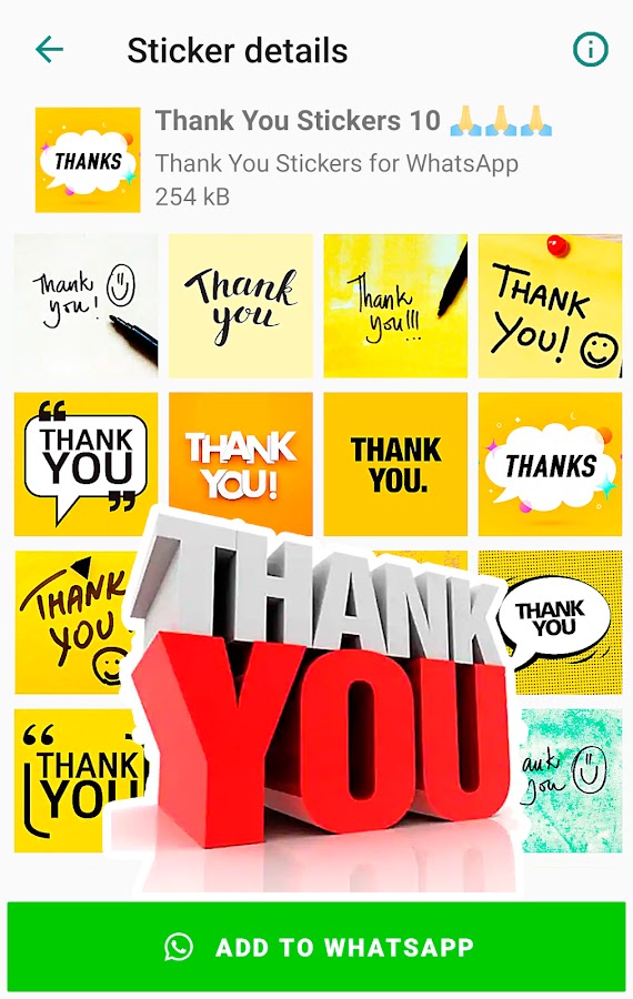 Содержит самые известные стикеры с благодарностью, такие как «Ещё раз спасибо за все», «Большое спасибо», «Спасибо за помощь», «Благодарю» и многие другие новые стикеры для ватсапа.