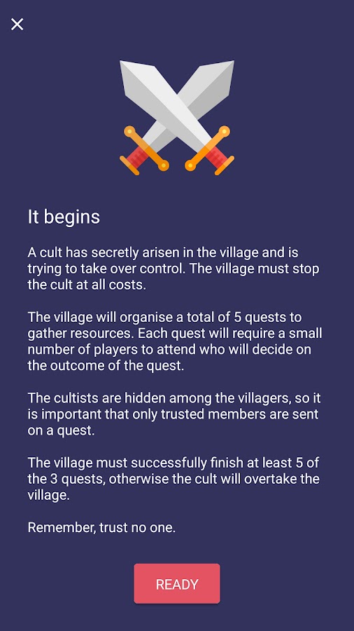 Игра разделена на 5 раундов. В каждом раунде новый лидер будет выбирать игроков для выполнения задания. Игроки, которые отправляются на задание, могут решить, будет ли это задание успешным или нет. Чтобы победить, деревня должна успешно выполнить не менее 3 заданий.
