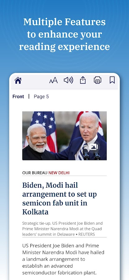 Наша цель — улучшать приложение с каждой итерацией, поэтому присылайте свои отзывы и предложения (если таковые имеются) по адресу epapercare@thehindu.co.in.