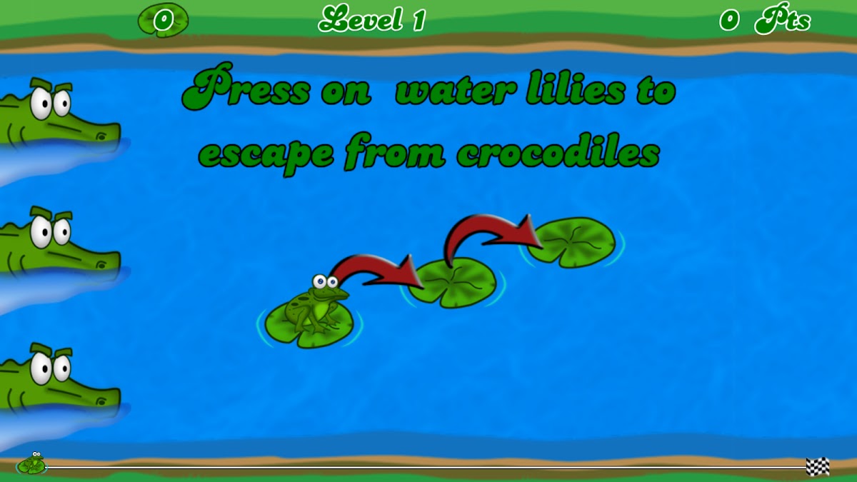 Прыжки лягушки это игра, в которой игрок демонстрирует свои рефлексы и скорость пальца вверх по течению, что делает его прыгать через водяные лилии, чтобы избежать этого он съедение крокодилам.