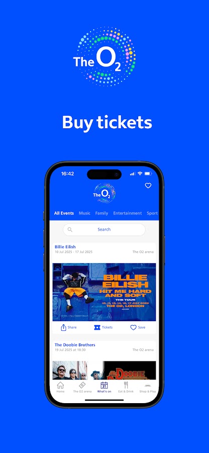 O2 — самая популярная в мире музыкальная и развлекательная площадка, а приложение O2 Venue — это универсальный способ получить от вашего визита максимум удовольствия. Через приложение вы можете отображать и передавать свои билеты с помощью AXS Mobile ID для бесконтактного и быстрого входа на арену, получать доступ к персонализированной информации о посетителях, такой как ближайшие концессии, удобства и выходы в зависимости от того, где вы находитесь, а также покупать еду, напитки и товары. Вы можете получить их в одном из наших специальных пунктов приема на арене, чтобы вы не пропустили ни одно мероприятие.