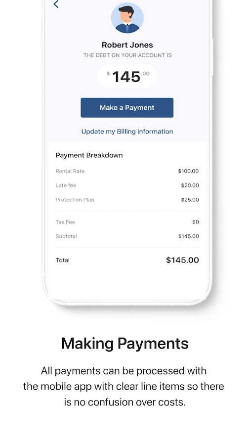 Платежи осуществляются легко и доступны через мобильное приложение, где арендатор может не только видеть, когда причитается арендная плата, но и сколько причитается, а также разбивку стоимости. Удобное приложение построено так, что арендаторам никогда не придется сомневаться в датах платежей или истории платежей.