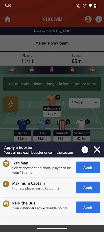 С бюджетом в 50 миллионов фунтов стерлингов соберите команду из 11 звёзд Премьер-лиги. Делайте трансферы, выбирайте капитана, чтобы получать двойные очки, и используйте тактические усилители.