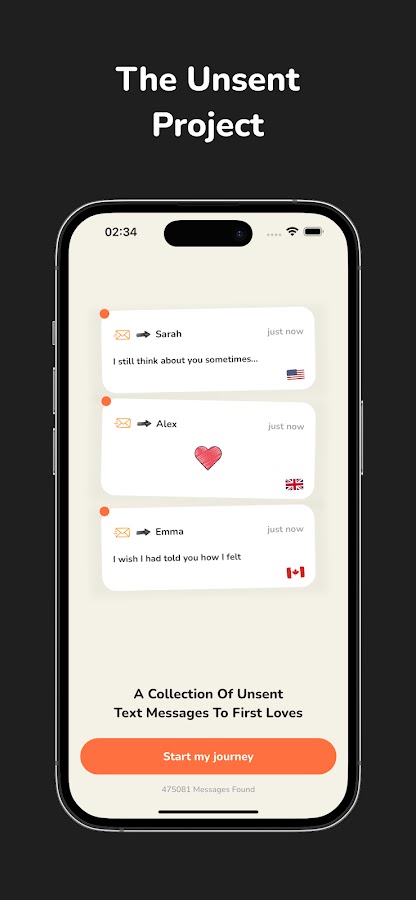 Вы когда-нибудь задумывались, не написал ли кто-то ваше имя в сообщении, которое так и не отправил? Unsent Messages предлагает вам крупнейшую в мире коллекцию анонимных сообщений-признаний, вдохновленную знаменитым феноменом проекта Unsent.