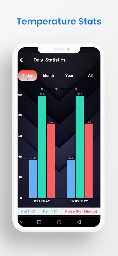Приложение «Термометр для лихорадки» — это приложение для отслеживания ежедневной температуры и переохлаждения. Термометр для дневника температуры тела используется для контроля температуры тела. Если у вас есть медицинский термометр и вы хотите отслеживать ежедневные показания температуры или лихорадки и хотите экспортировать данные, чтобы показать их своему врачу, то это приложение для вас. Приложение Термометр используется для создания графиков статистического анализа и отчетов на основе введенных отчетов. В приложении «Цифровой термометр» есть раздел с информацией и рекомендациями, который помогает пользователю обновляться соответствующим образом. Эта история дневника температуры тела: приложение для отслеживания термометра лихорадки предоставляет вам все функции, необходимые для отслеживания, записи и анализа температуры тела и пульса.