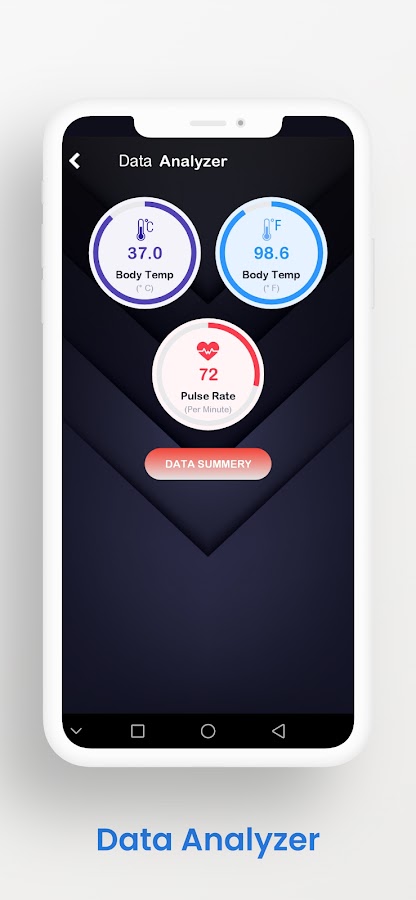 Приложение для отслеживания лихорадки поддерживает введенные пользователем записи. Приложение отслеживания термометра тела будет просматривать записи, введенные пользователем, и просматривать сводку введенных записей с пользовательскими тегами и примечаниями. Трекер температуры тела дает вам максимальный и минимальный диапазон заданных значений в приложении для хранения предыдущих записей и дает вам информацию о температуре вашего тела, которая дается в соответствии с термометром.