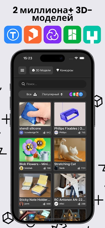 • Поиск на Thingiverse, Printables, Cults3D, MakerWorld и MyMiniFactory