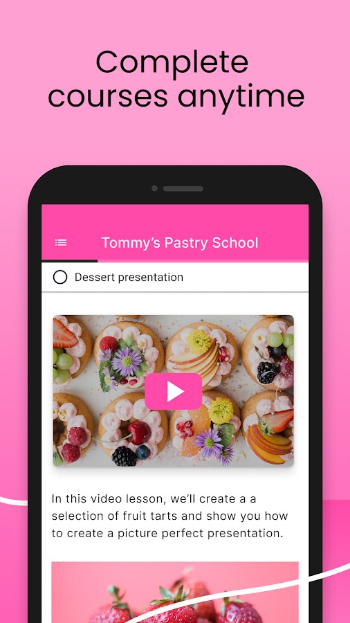 Учитесь на работе, дома или в дороге с помощью видео-, аудио-, текстовых и других популярных типов уроков, отформатированных специально для мобильных устройств. Поддерживайте высокий темп обучения, продолжая с того места, где вы остановились, с отслеживанием прогресса и запуском и завершением уроков. Благодаря видео, аудио, тексту и другим популярным форматам уроков, оптимизированным специально для мобильных устройств, вы можете продолжать обучение с того места, на котором остановились, ничего не пропустив.