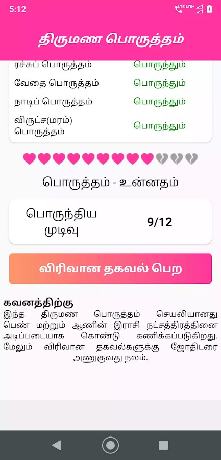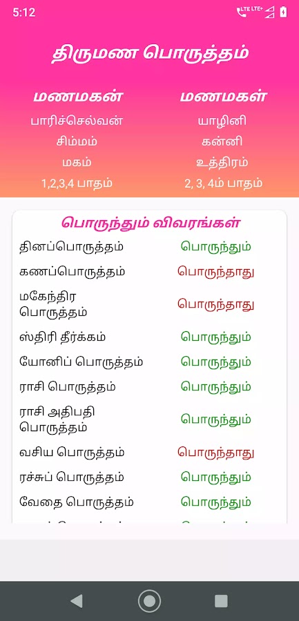 Это приложение тирумана порутхам включает в себя 12 типов совпадения брака с помощью девочки и мальчика раси и натчатирам.
