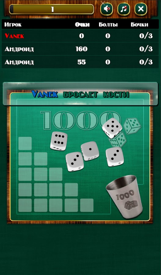 Скачайте игру Тысяча в кости для Android бесплатно - последняя версия (1.3.7) уже доступна для установки на ваш телефон или планшет.