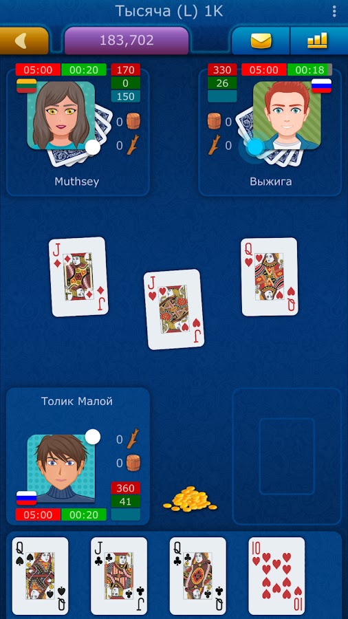 Играйте бесплатно в Тысячу онлайн для двоих в приложении LiveGames!
