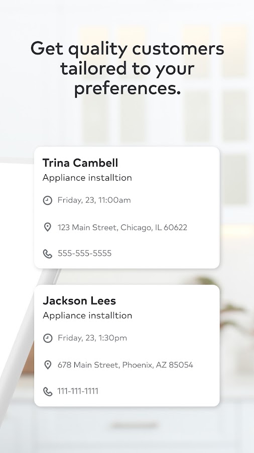 За последние 12 месяцев к Thumbtack присоединились более 4 миллионов клиентов, ищущих профессионалов в своей области. Thumbtack снижает конкуренцию между профессионалами и обеспечивает качественных потенциальных клиентов, готовых забронировать.