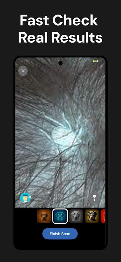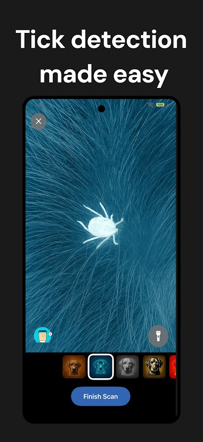 Инвертированные цвета усиливают контраст, поэтому клещи, блохи и другие мелкие паразиты резко выделяются на шерсти собаки. Помогает вовремя заметить клещей — где угодно и когда угодно.