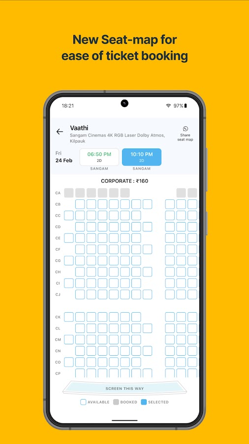 Имея более 2000 кинотеатров/театров (и их количество продолжает расти), вы можете посмотреть все последние фильмы города на лучших местах в доме. Попрощайтесь с ожиданием в длинных очередях и беспокойством о том, какое место выбрать – с Ticketnew вы можете легко забронировать билеты в кино онлайн в несколько нажатий и обезопасить себя.