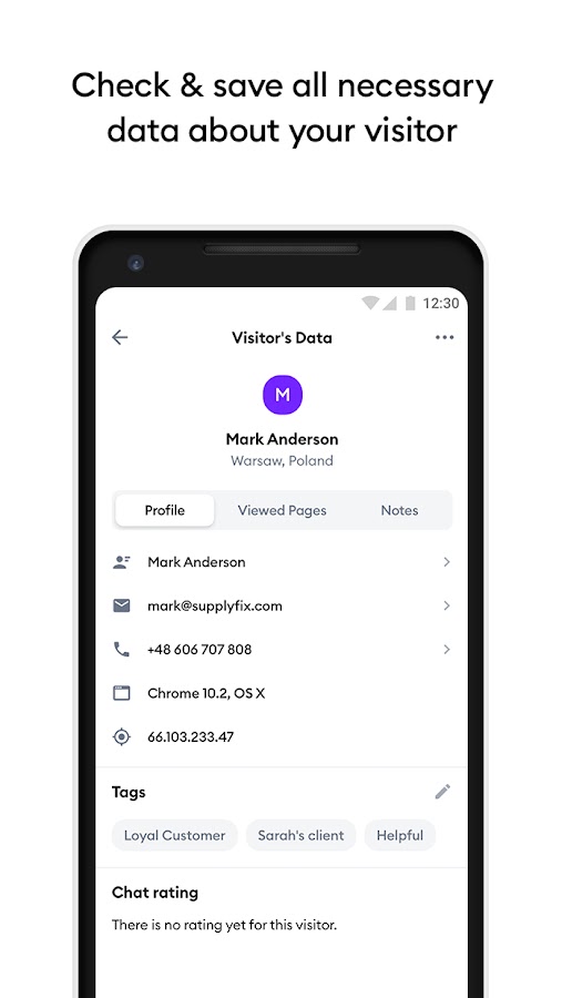 • Сведения о посетителях — доступ к таким сведениям, как IP-адрес посетителя, город, страна, тип устройства и браузер.