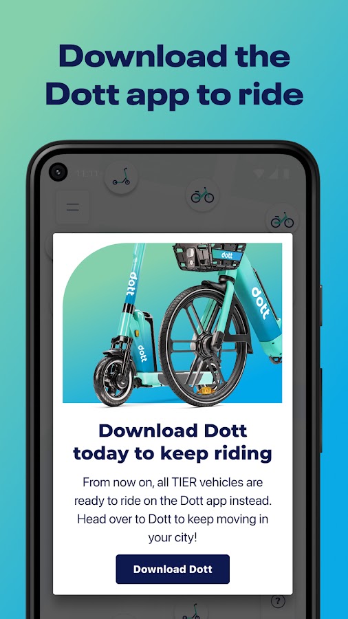 Отныне все транспортные средства TIER готовы использовать приложение Dott. Загрузите приложение Dott сегодня и начните кататься!