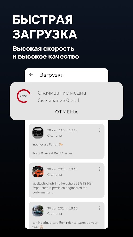 В приложении реализованы все средства для удобного просмотра загруженных видео. Помимо медиафайлов также сохраняется описание видео и его автор. Поэтому вы можете скачать видео из тиктока и получить доступ к контенту даже когда нет интернета.