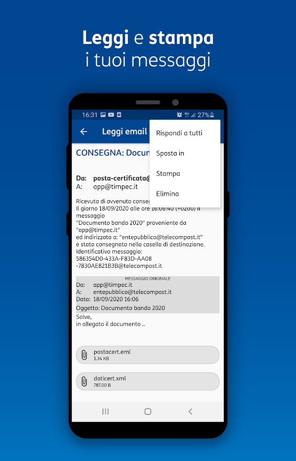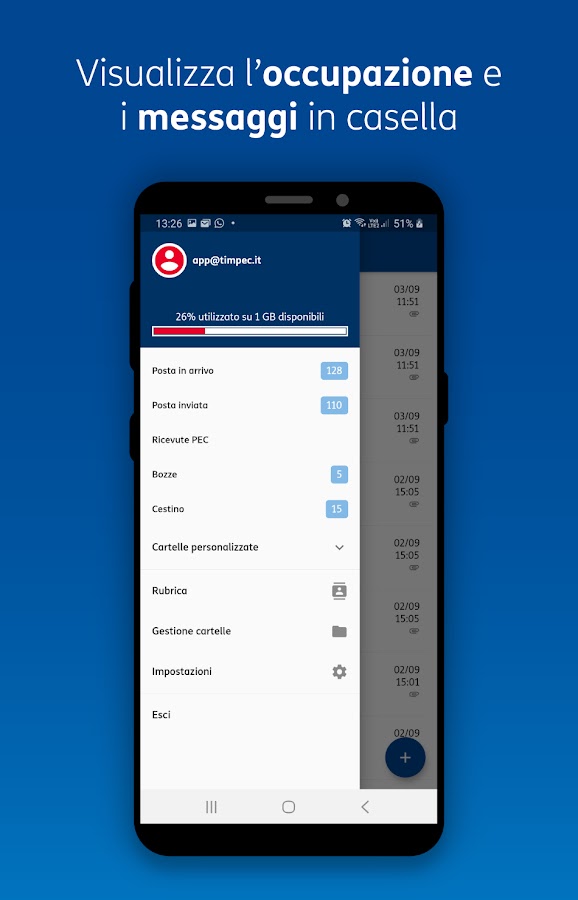 TIM PEC — это бесплатное приложение, которое развивает и упрощает управление вашим почтовым ящиком Certified Email. Вы можете использовать его где угодно, со смартфона или планшета Android. Обновления происходят мгновенно при любом подключении к интернету.