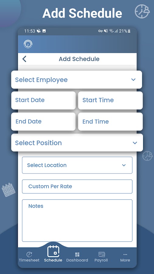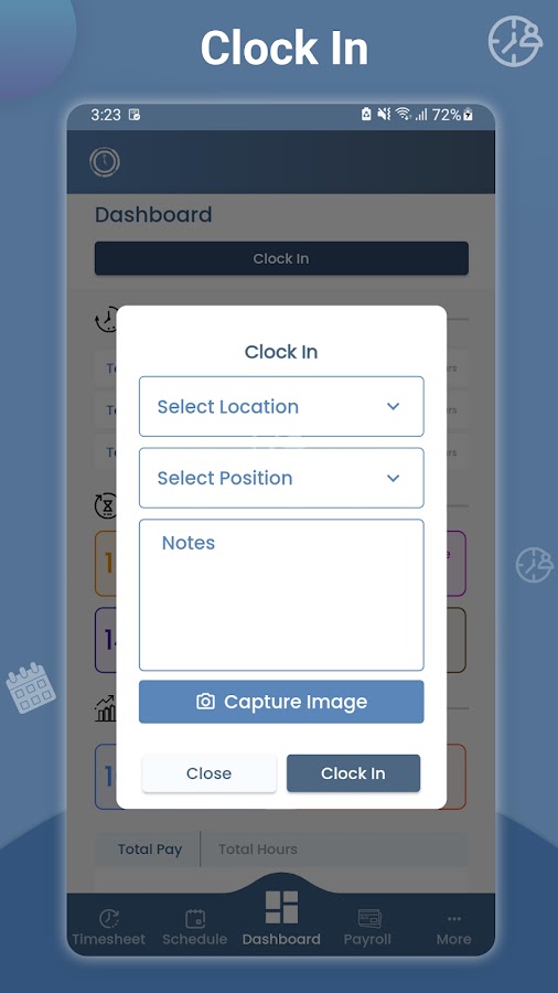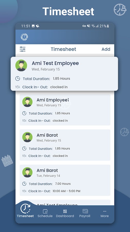 • Сотрудники могут часами, и выйдет, добавить изменения времени лист, и просматривать их график работы On-The-Go.