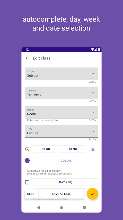 Приложение предоставляет конструктор для создания и редактирования расписания, автозаполнение полей уже введенными данными, добавление занятия на несколько дней недели, отображение или скрытие занятия в выбранную дату