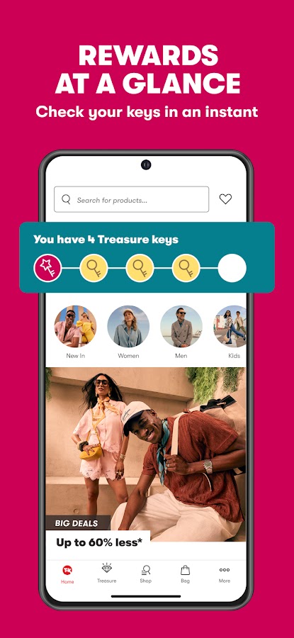 Получайте вознаграждения просто за покупки с нашей программой лояльности Treasure. За каждый поход в магазин вы получаете ключ, пять ключей и можете выбрать потрясающую награду или принять участие в одном из наших потрясающих конкурсов. Кроме того, участники программы Treasure еженедельно получают электронное письмо с «ранним доступом» с последними предложениями от крупных брендов за 48 часов до остальных! Впервые в приложении вы можете увидеть все свои ключи Treasure в одном месте и легко получить доступ к своей учетной записи.