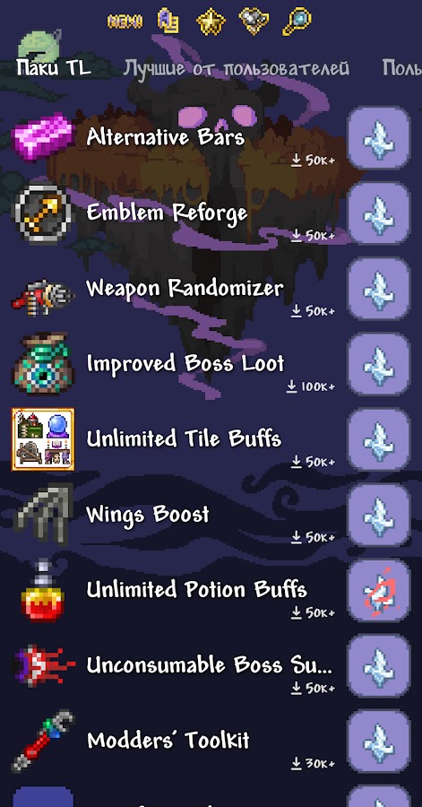 * Для работы программы требуется официальный клиент террарии на андроид.