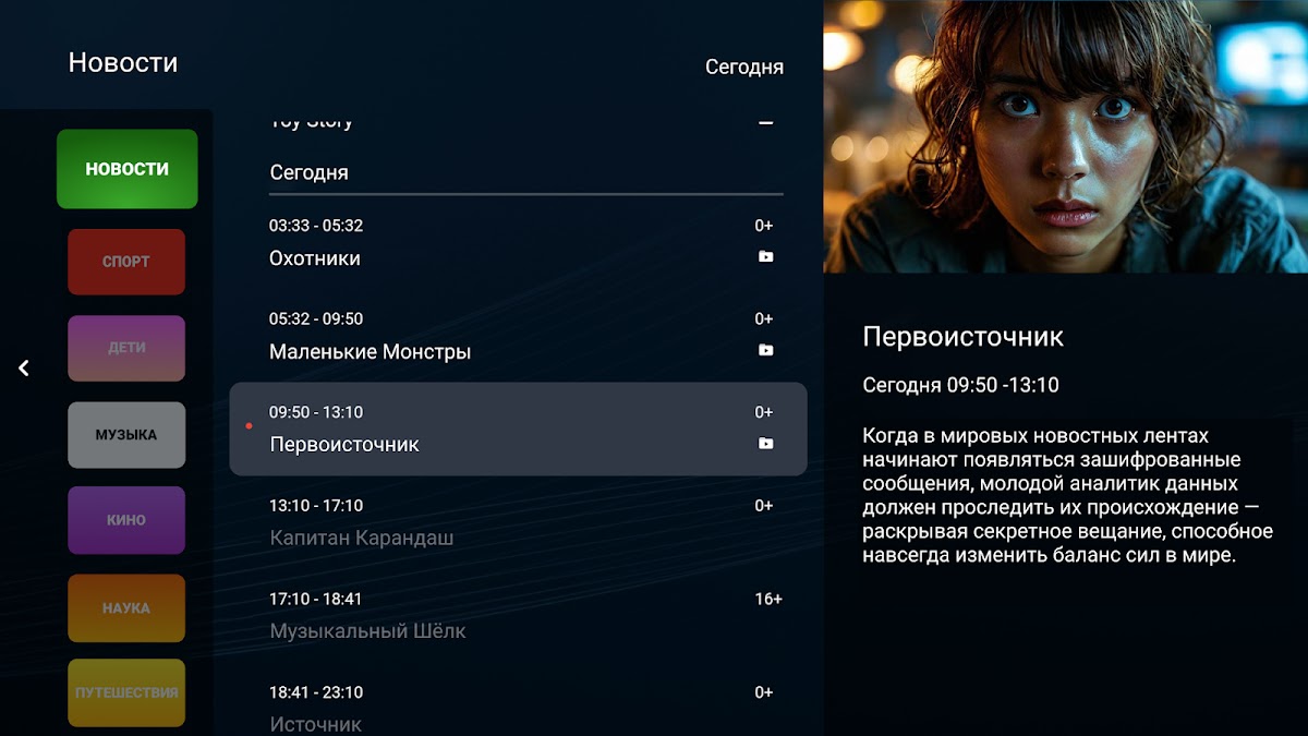 Удобное приложение позволяет смотреть новости, кино, мультфильмы, спорт из списка каналов вашего IPTV провайдера на всех Android TV.
