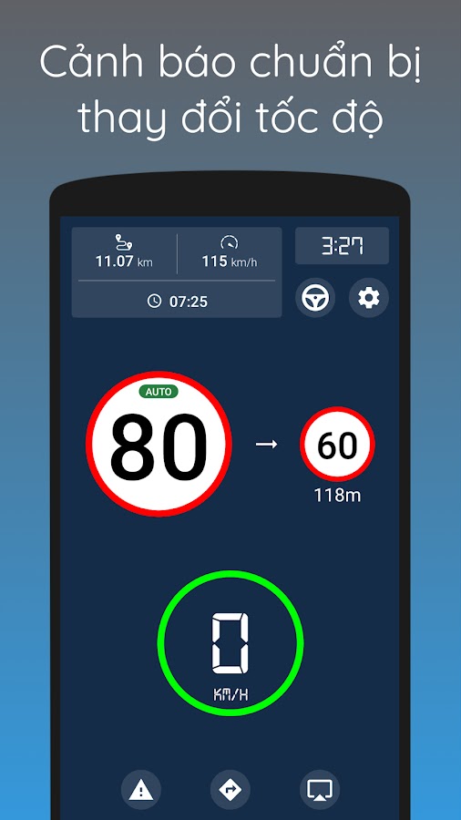 Приложение автоматически обновит максимальную разрешенную скорость и текущую скорость транспортного средства, тем самым выдает предупреждение о превышении допустимой скорости, помогая вам избежать ошибок скорости.