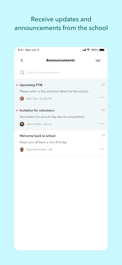 * Легко просматривать все школьные объявления, уведомления, сообщения и многое другое.