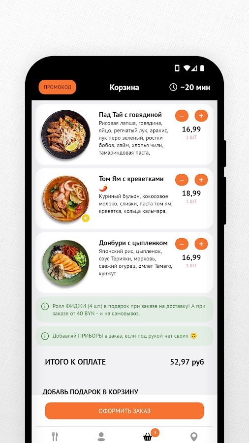 Система лояльности в приложении. Накапливай бонусы с каждой покупки и оплачивай ими заказы.