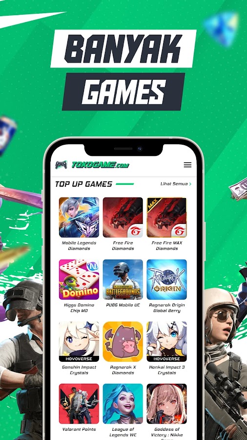 Tokogame предоставляет все и сотни опций для самых популярных игр: Купить Mobile Legends Diamonds (ML), Free Fire Diamonds (FF DM), Royal Dreams, HDI MD, Steam Wallet, PUBG UC, Bigo Live Diamonds, Boss Party, CODM CP. , жетоны Honor of Kings, кристаллы Genshin Impact по самым низким промо-ценам и множество интересных бонусов! Мы также предлагаем виртуальные продукты, такие как пакеты подписки на развлечения, в одном приложении, например Vidio.