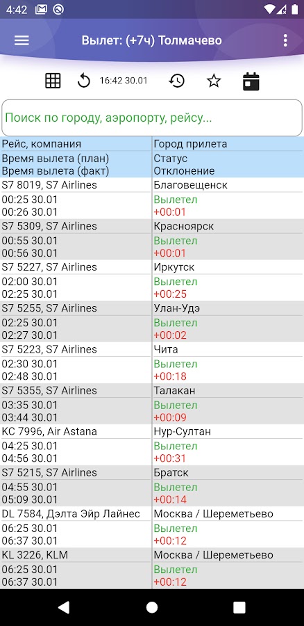 Неофициальное табло от аэропорта Новосибирска (Толмачево)