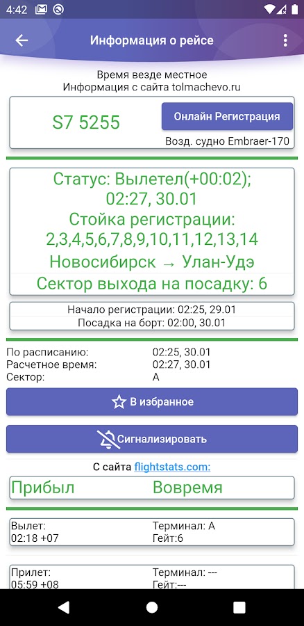 ◊ ДОПОЛНЕНИЕ с сайта flightstats.com