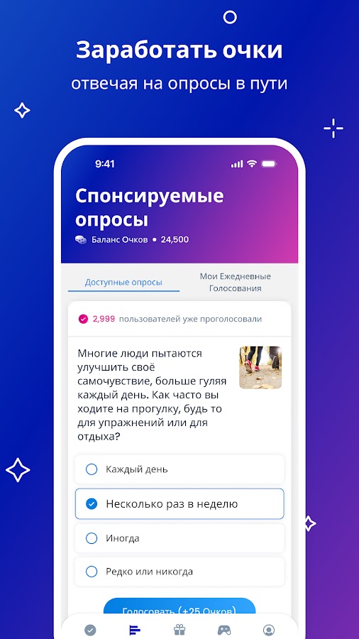 Просто ответьте на наши ежедневные опросы, за которые вы получите баллы, которые можно обменять на подарочные сертификаты, классные товары или даже наличные из нашего каталога стимулов. Чем больше вы участвуете, тем больше зарабатываете. Все, что вам нужно сделать, это скачать наше приложение и создать учетную запись. Если вы уже являетесь членом Toluna, просто скачайте и войдите в систему.