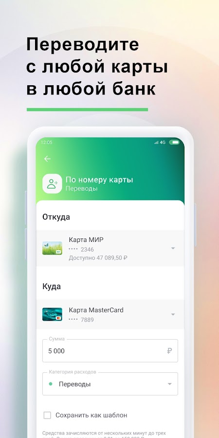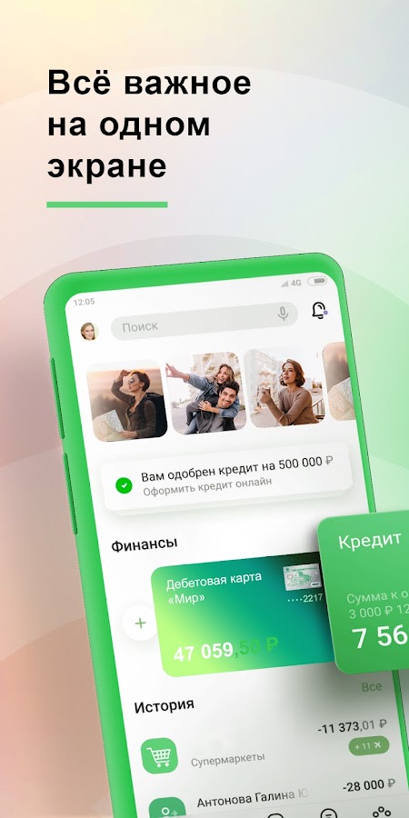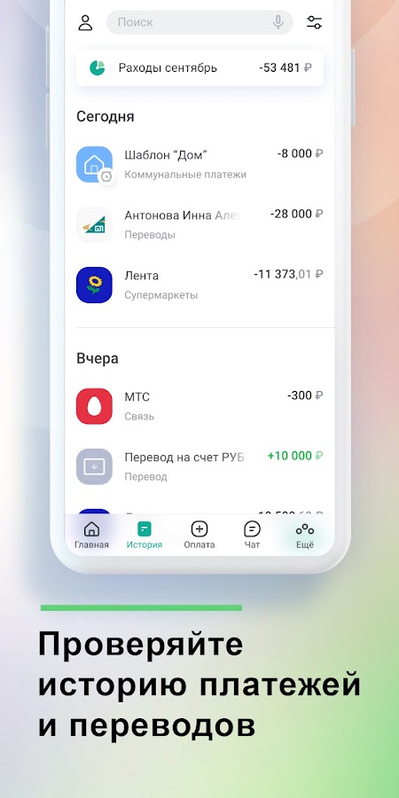 Приложение позволяет физическому лицу осуществлять основные банковские операции через мобильное устройство: совершать переводы со счетов (вкладов, карт), переводы СБП, оплачивать по QR-коду, проверять остаток на своих счетах, просматривать историю операций за любой период.