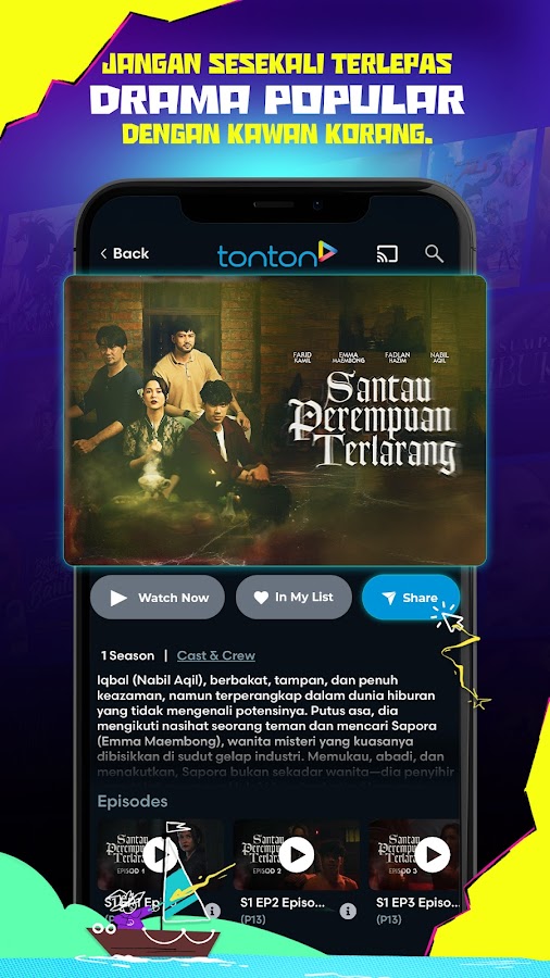 Смотрите бесплатно или подпишитесь на TontonUp за 9,90 ринггитов в месяц, чтобы получить больше развлечений премиум-класса.