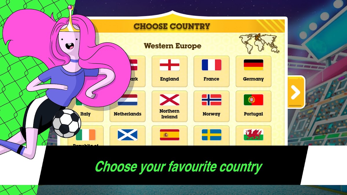 Создайте футбольную историю с любимой сборной! Выбирайте страны из списка стран со всего мира, чтобы принять участие в турнире Toon Cup и получить шанс стать чемпионом мира по футболу! Играйте, забивайте голы, зарабатывайте очки и боритесь за место в таблице лидеров.