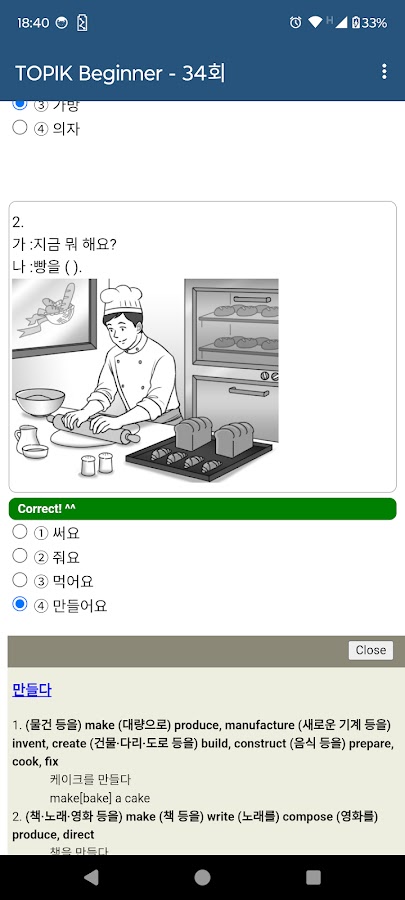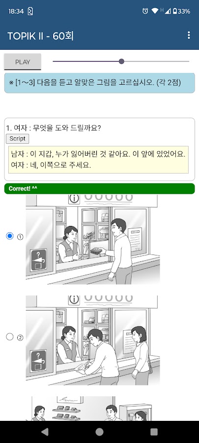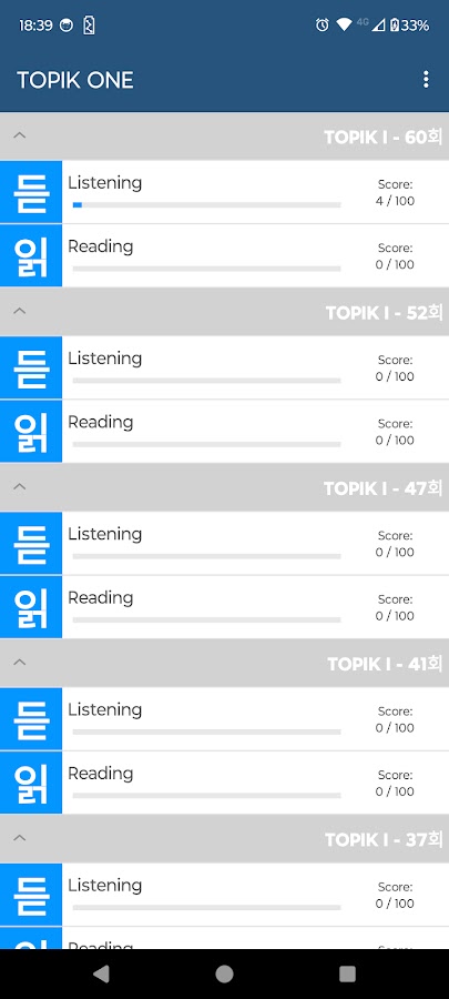 * TOPIK ONE позволяет вам ответить и вычислить результат, как и настоящий экзамен Topik.
